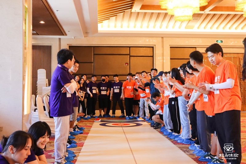 為增進(jìn)新員工之間的親密感、凝聚力,公司選擇了旱地冰壺、玩霸江湖以及納斯卡巨畫(huà),作為新員工團(tuán)建拓展活動(dòng)項(xiàng)目。簡(jiǎn)單的暖身破冰小游戲后,新員工們被分為八個(gè)小分隊(duì)。分隊(duì)通過(guò)選擇隊(duì)長(zhǎng)、確立隊(duì)名、繪制隊(duì)旗、制定口號(hào)來(lái)完善團(tuán)隊(duì)的組建。通過(guò)分組形式,迅速建立溝通環(huán)境,初步形成團(tuán)隊(duì)氣氛。
