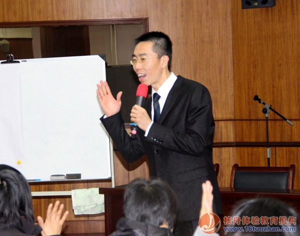 12月16日在核舟體驗式培訓課堂上,不時傳來熱鬧的歡笑聲、討論聲、爭執聲,這是核舟體驗吳老師在為德威中、高層管理人員授課現場,課程主題:卓越團隊“溝通與合作”,課程模式:游戲體驗,項目討論、總結,理論講解。