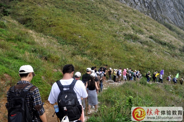 帶著裝備,談笑風生,大家互幫互助,徒步穿越幽幽峽谷……