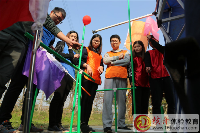 呼吸的力量——是一個促進團隊溝通與協作很好的項目,組員分為領導、指揮、執行三小組,領導組和指揮組相互規定區域內口頭溝通,領導組提出具體要求,指揮組來指揮執行組搭建符合要求的生命儀器,然后進行儀器的測試。
