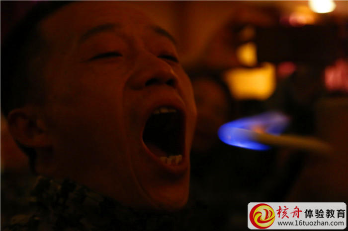 吞火:核舟體驗教育自主研發項目—火有幾千攝氏度,我們要把點著的火把放進自己的嘴巴里,將其熊熊的火焰滅掉,此項目必須由專業的培訓師進行操作,切勿隨意模仿!!在吞火的過程中我們的恐懼感會隨之增高、勇于挑戰克服自己的心里障礙與恐懼,方可拉近你與成功之間的距離,相信通過這次吞火體驗你會對自己的工作態度有極大的轉變……
