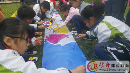 4月26日,望亭望南小學的小朋友們來到常熟以“傳統教育為主題的紅色教育游”著稱的沙家浜。在這里,我們利用景區獨有的綠色大草坪為望南小學的小朋友們策劃了一場具有挑戰性的“愛國巨畫“。