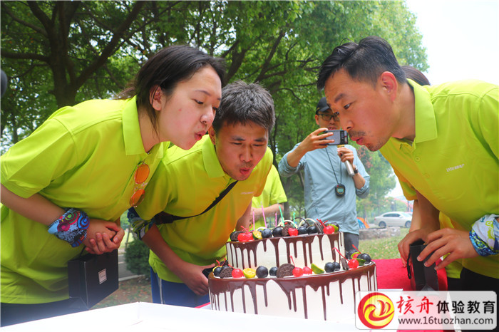 走進燒烤區(qū),就聽到一陣生日快樂歌,沒錯,今天團隊中,有幾個伙伴們是生日呢,在此核舟拓展精心準備了一場屬于他們,屬于綠都的生日宴會。