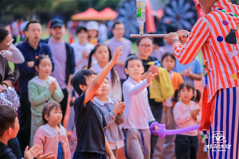 現場還有小丑穿梭其中,與大家互動表演,派送小禮品,將歡樂的氛圍推向了高潮。