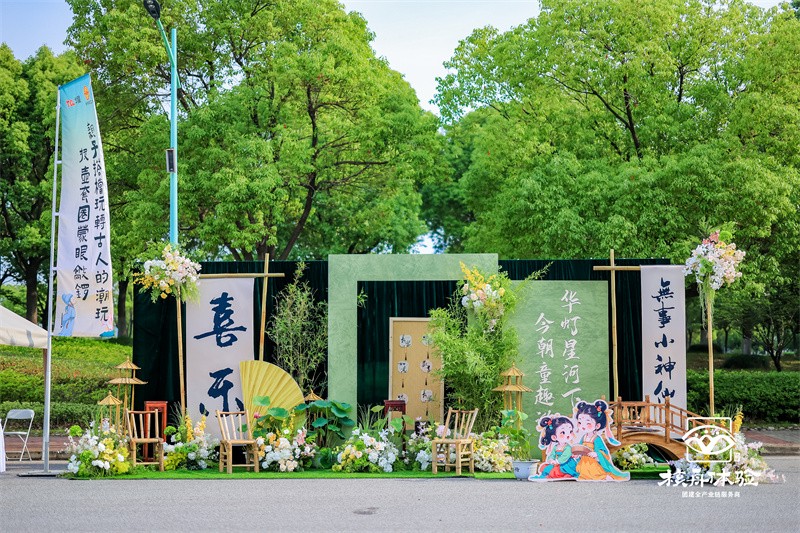 踏入活動現場,青磚黛瓦、燈籠廊架構筑的江南雅集撲面而來。