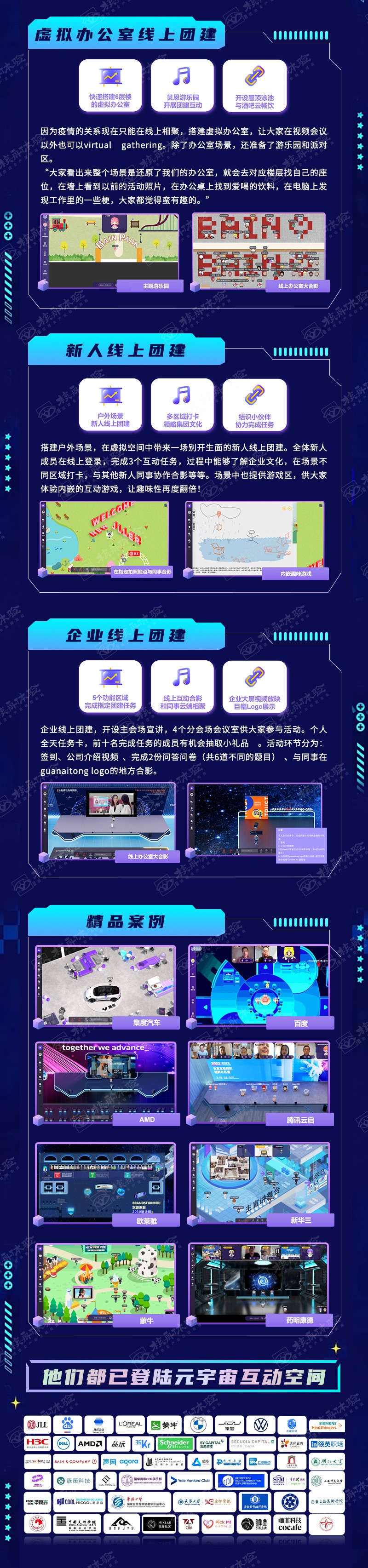 線上云年會+元宇宙技術 讓企業年會更精彩,具有沉浸式,跨空間,強互動的特點,在不確定的時代提供確定性解決方案。核舟虛擬空間,融合線下場景、視頻會議、直播互動等常見年會形式,效果倍增。企業活動充分場景化 全員享受獨特活動沉浸感。無懼疫情線下活動限制 全國/全球成員均可接入。